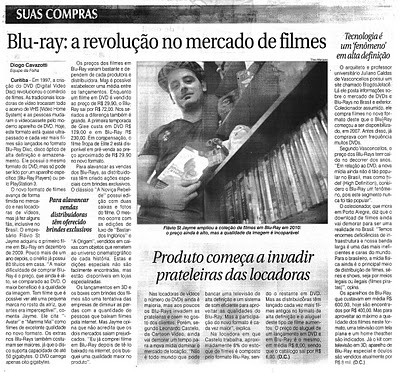 O novo formato de filmes avança de forma tímida no mercado e nas locadoras de vídeos, mas já fez alguns fãs, inclusive no Brasil. O empresário Flávio St Jayme adquiriu o primeiro filme em Blu-Ray em dezembro de 2009. Pouco mais de um ano depois, o cinéfilo já possui 80 títulos em casa. ”A maior dificuldade de comprar Blu-Ray é o preço, que ainda é alto, se comparado ao DVD. O maior benefício é a qualidade da imagem. Tem filme que é possível ver até uma pequena marca no rosto da atriz, que antes era imperceptível”, comenta Jayme. Ele cita ”Avatar” e ”Mamma Mia” como filmes de excelente qualidade no novo formato. Os extras nos Blu-Rays também costumam ser maiores, já que o disco suporta capacidade de até 50 gigabytes. O DVD carrega apenas oito gigabytes.