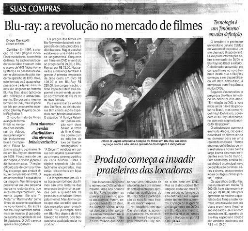 Flávio St Jayme ampliou a coleção de filmes em Blu-Ray em 2010: o preço ainda é alto, mas a qualidade da imagem é incoparável