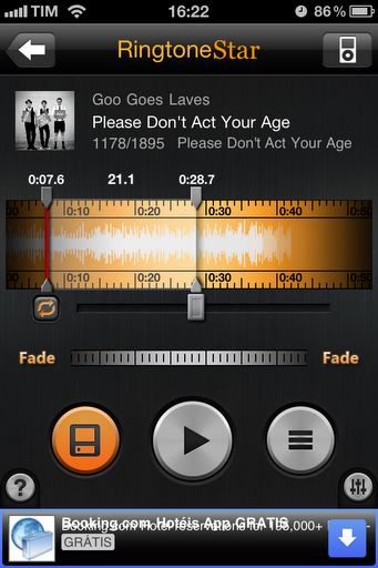 Abra o aplicativo e nele mesmo selecione a musica que quer transformar em toque. Na tela do aplicativo arraste com o dedo o marcador do final até 29 segundos.