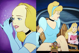 Entre as artes, há beijos homossexuais entre Aladdin e Hércules, Úrsula e Malévola, Jafar e Capitão Gancho, além da Rainha de “Branca de neve” cheirando cocaína e Alice, de “Alice no país das maravilhas” raspando o cabelo como Britney Spears.