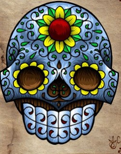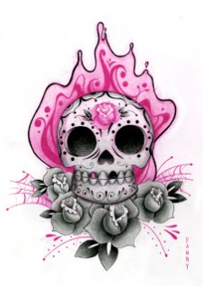 Aquelas caveirinhas alegres da morte, todas enfeitadas, floridas, sabe como? Então… caveiras estão na moda. Nas roupas, acessórios, móveis, tudo mais. Mas as mexicanas, alegres que só elas, surgem todos os anos nos dias de los muertos, dia 02 de novembro. Diferente do Brasil, os mexicanos comemoram o dia de finados com festa e alegria. E estas caveirinhas celebram e homenageiam os mortos.