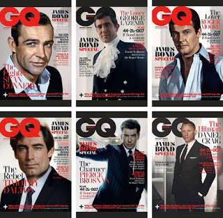 (capas de todas as edições da revista masculina GQ com os Bonds nas capas)