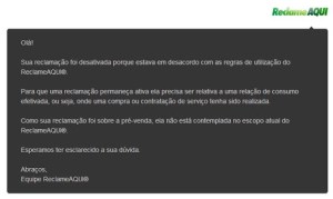 Qual não foi minha surpresa hoje quando recebi um email do RA dizendo que… tcha-na-nam….. minha reclamação tinha sido EXCLUÍDA do site!!