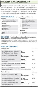 Para a responsável pelo estudo, a professora Carmita Abdo, coordenadora do Projeto Sexualidade do Instituto de Psiquiatria do Hospital de Clínicas de São Paulo, a pesquisa mostra bem as diferenças culturais e comportamentais das diferentes regiões do Brasil. “O sexo não é um assunto que faz o curitibano perder a cabeça. Em outras pesquisas já demonstramos que o curitibano é o povo mais fiel. Ele valoriza o sexo, mas não tanto como os mineiros, por exemplo”, comenta.