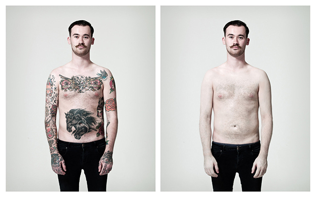 Mas até que ponto a sociedade conseguiu se despir deste preconceito? Pensando nisso, o fotógrafo Lee Kirby criou a série Judgement, em que mostra a mesma pessoa com e sem tatuagens, e nos leva à reflexão: como será que o mesmo indivíduo se sairia em entrevistas de emprego com e sem tatuagens? E como seria olhado na rua? A resposta está estampada abaixo: