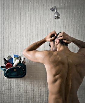 • Use pequenos frascos para transportar creme hidratante, xampu e condicionador, evitando estojos grandes que não agradam muito ao perfil masculino.