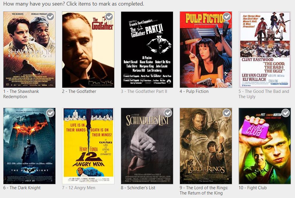 O maior site de cinema do mundo, o Internet Movie Database (ou IMDB) fez uma página onde postou os 250 filmes mais bem votados por seus usuários e pergunta: quantos destes você já viu?