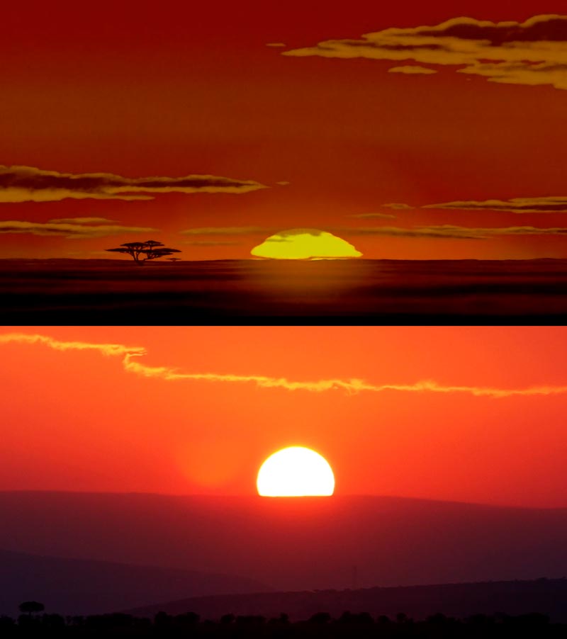 Então decidiu guardar algumas cenas do Rei Leão e comparar com as fotos da viagem, compartilhando-as depois no site Imgur. As fotos de Heuser foram vistas mais de 350 mil vezes e, se nem todas são exatamente iguais (seria assustador), as semelhanças são realmente espantosas. Olha só: