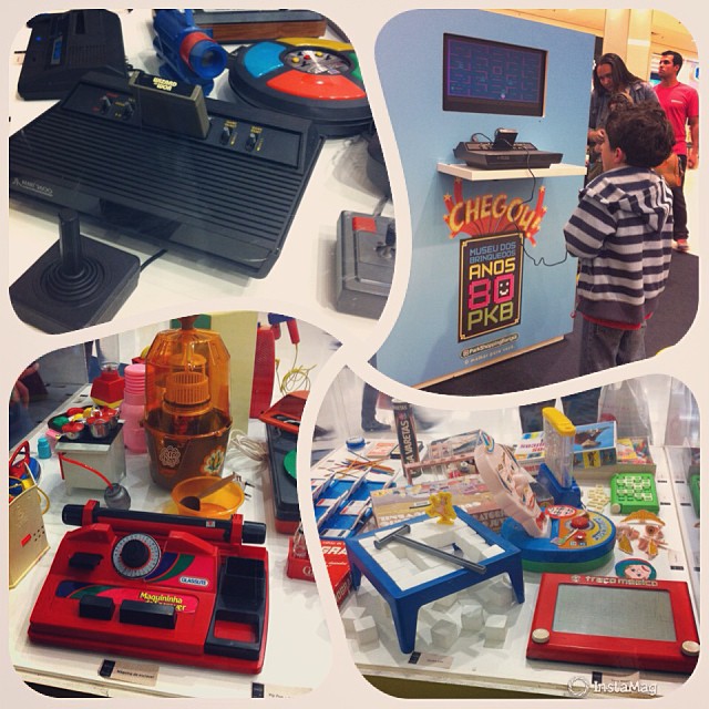 A exposição conta, ao todo, com 16 vitrines com cerca de 120 exemplares dos brinquedos que acompanham painéis com curiosidades que fizeram parte da vida de muitos clientes. Entre os destaques estão o Ferrorama; jogos de tabuleiro como: Cara a Cara, War e Jogo da Vida; os eletrônicos da época: Pense Bem e Genius; os bonecos Alf ‘O ETeimoso’, Beijoca, Bate Palminha, Lu Patinadora, entre outros.