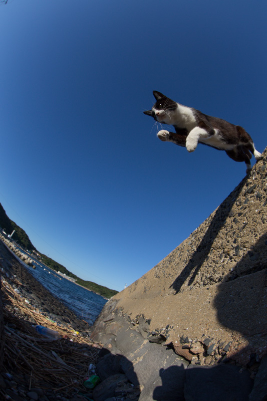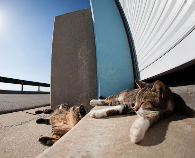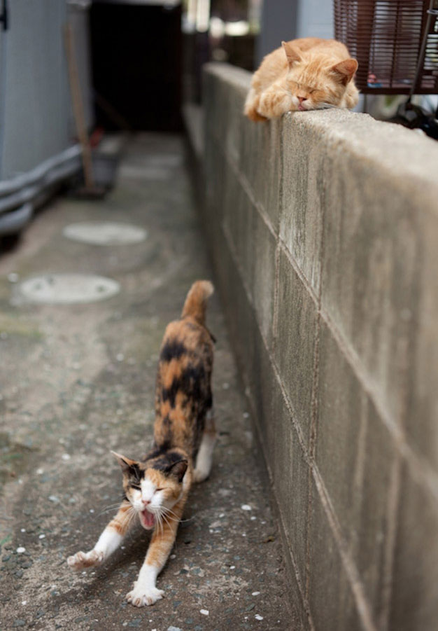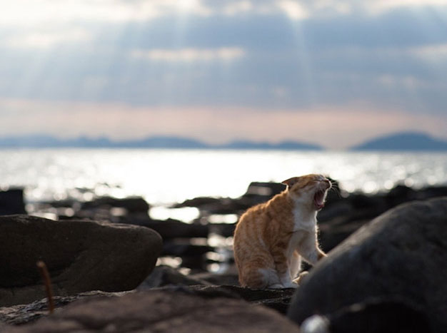 O fotógrafo Fubirai passou os últimos 5 anos documentando as vidas das centenas de gatos que vivem soltos na ilha de Fukuoka, no Japão. Os gatos são alimentados por pescadores e vagam livremente pelas ruas, portos e casas das cidade.