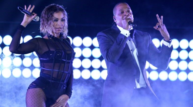 A festa começou com a popstar Beyoncé e uma sensual performance de “Drunk In Love”. Depois de dançar sozinha em uma cadeira, a estrela cantou com o marido, Jay-Z. Os dois saíram abraçados e foram aplaudidos de pé.