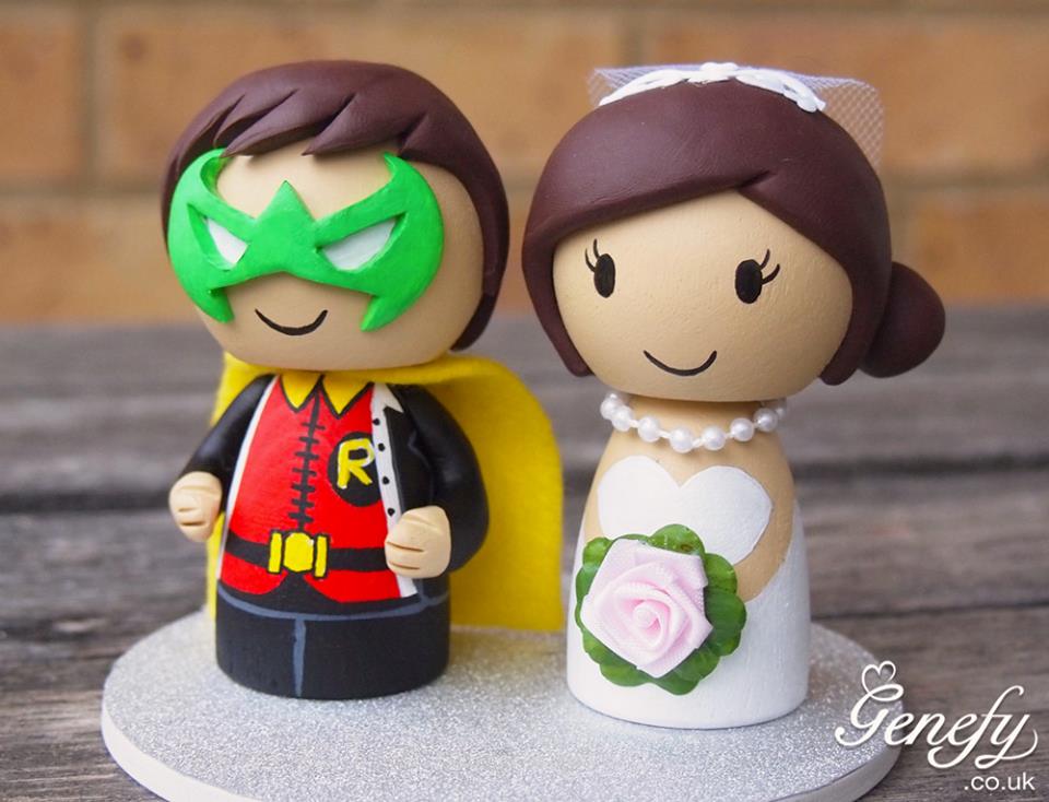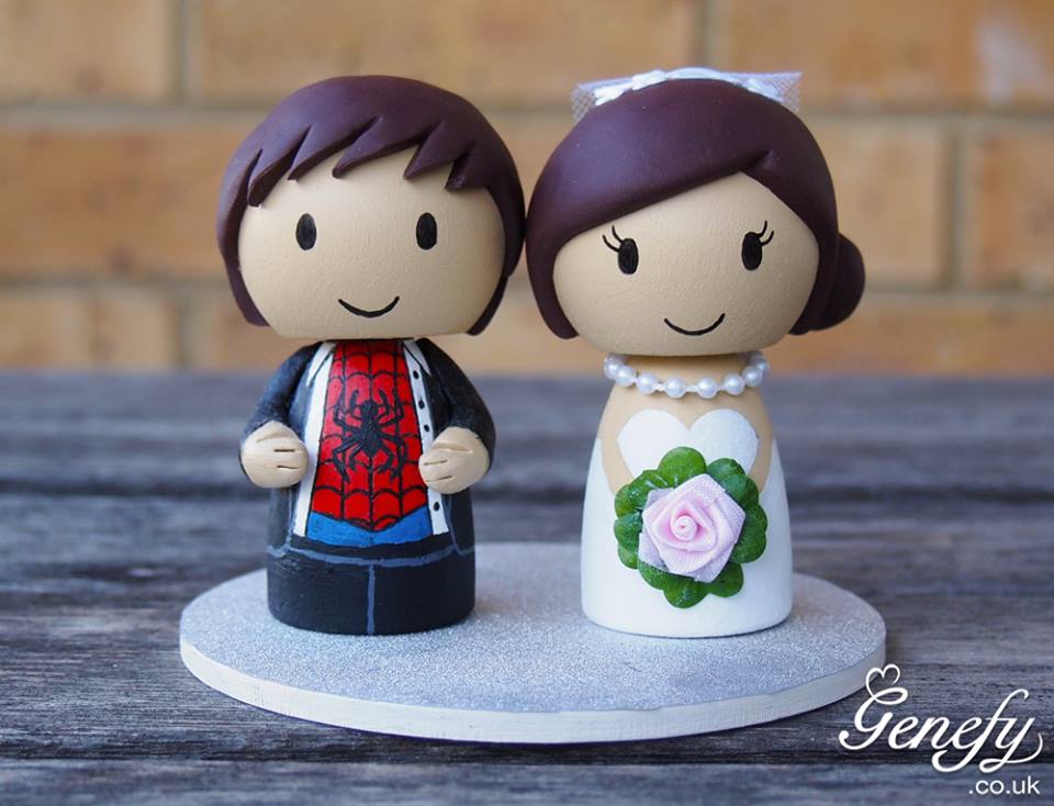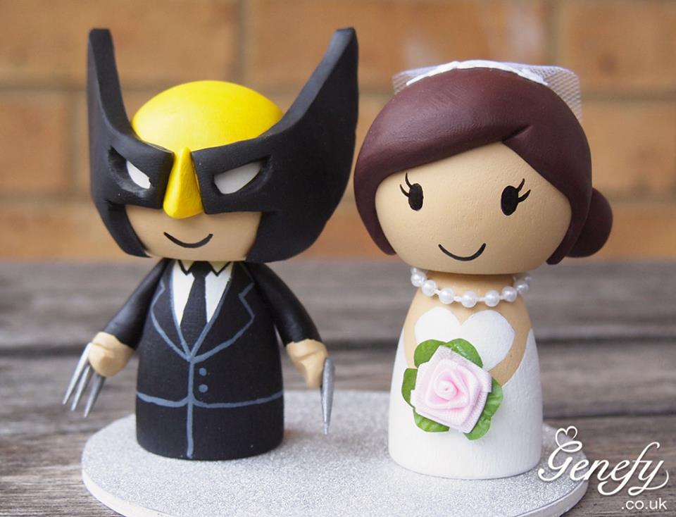 O casalzinho em cima do bolo de casamento já é tradição. Mas faz algum tempo que deixou de ser só os bonequinhos tradicionais e sem graça. Hoje eles estão cada vez mais personalizados, se parecem com os noivos, têm poses engraçadinhas e… viraram super heróis!
