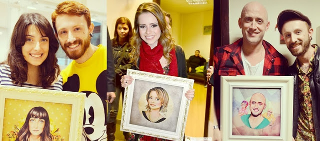 Na verdade eu só vou quando já está certo que ele vai me receber. O lado bom de divulgar pela internet é que os fãs desses artistas se encarregam de compartilhar meus desenhos e o próprio artista acaba vendo. Então na maioria dos casos a própria produção desses artistas me procura para combinarmos o encontro e a entrega do quadro.