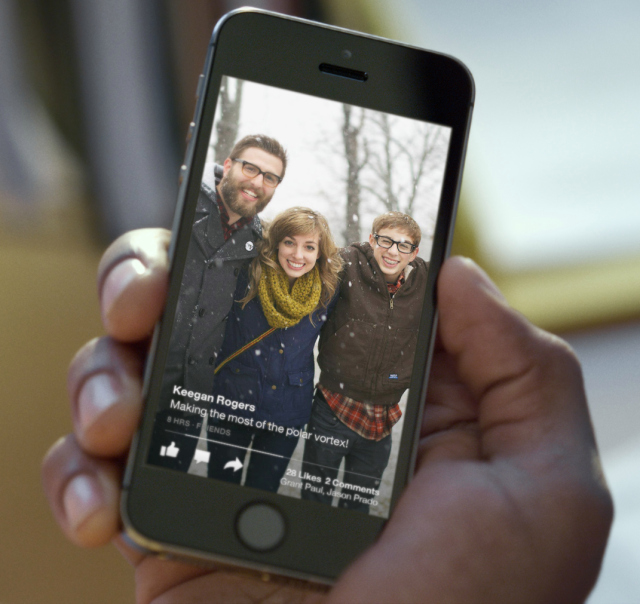 Quando você faz o download, percebe uma interface nova e reimaginada para o feed de notícias. A parte de cima da tela mostra grandes fotos e vídeos, enquanto a parte de baixo mostra updates de status e links de postagens. Você pode mover para a esquerda para navegar entre as postagens. Clicando em uma delas, a imagem se desdobra em uma animação para tomar a tela toda onde os vídeos iniciam automaticamente. “Pince” outra história e a tela se dobra novamente e você volta ao feed de notícias.