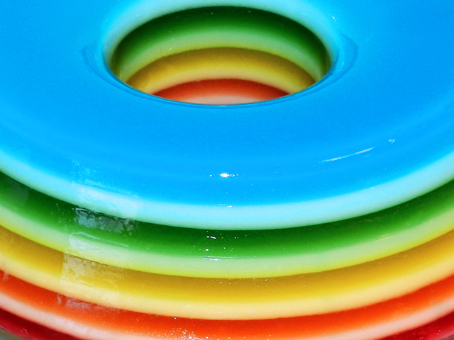9, 10 e 11- Continue repetindo todos os passos com as gelatinas seguintes: amarela, laranja e vermelha.
