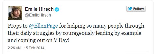 Rapidamente Hollywood se colocou a seu favor, apoiando e aplaudindo a atitude da atriz. Atores como Chöe Grace Moretz, Jason Biggs, Emille Hirsch, Kate Mara e Jesse Tyler Fergusson e o cantor Lace Bass (ex N*Sync que recentemente também se assumiu gay) elogiaram no twitter a atitude: