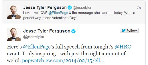 Page citou um caso onde um tabloide publicou uma foto sua indo para a academia de calças de moletom, onde o paparazzo perguntava “Por que esta linda moça se veste de forma tão masculina?”. Sua resposta: “Porque gosto de estar confortável”. Segundo ela, esse tipo de estereótipo de gênero não serve pra ninguém. A atriz fez questão de citar e agradecer aos exemplos de coragem de pessoas que se assumiram, como o jogador de futebol Michael Sam, a atriz do seriado Orange is the New Black, Laverne Cox e as cantoras Tegan e Sara Quin.