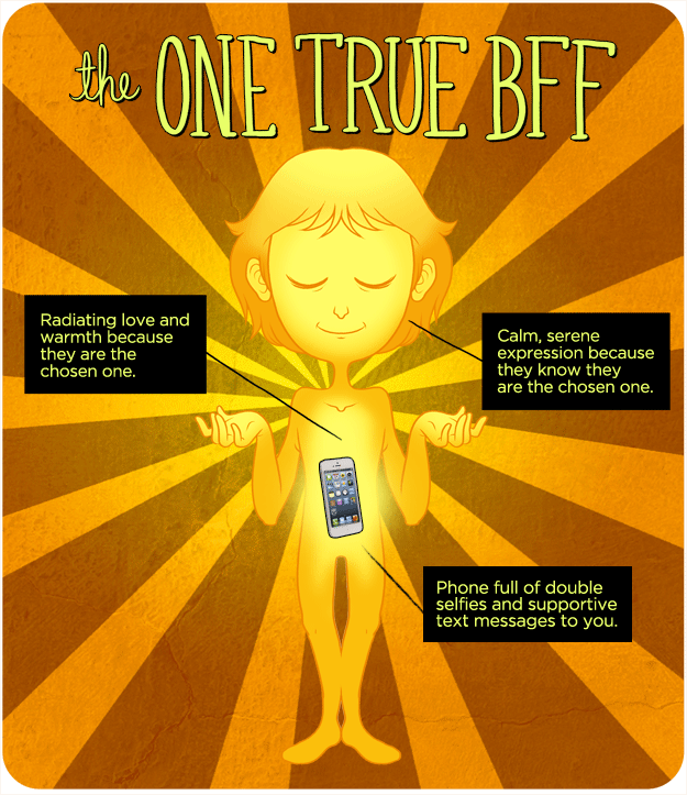 O Único e Verdadeiro Melhor Amigo é uma coisa rara e preciosa, e encontrar um nos seus vinte e poucos anos é algo que você deve dar valor. O Único e Verdadeiro Melhor Amigo é a primeira pessoa a escrever pra você no seu aniversário, e ele está sempre pronto para uma maratona de Netflix. Você pode passar horas com seu Único e Verdadeiro Melhor Amigo e não se enjoar dele porque ele é o escolhido, o melhor.
