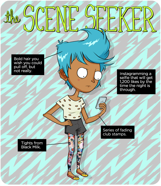 O Amigo Moderninho vai cancelar os planos com você no último minuto porque ouviu que algum famosinho de uma banda gringa indie está em um boteco no centro da cidade. Mas você nunca fica com raiva por muito tempo, pois seu Amigo Moderninho sempre vai recompensá-lo mais tarde, levando você a um estranho clube subterrâneo em algum lugar. Além disso, o Amigo Moderninho conhece as melhores bocas da cidade. Ponto pra ele!