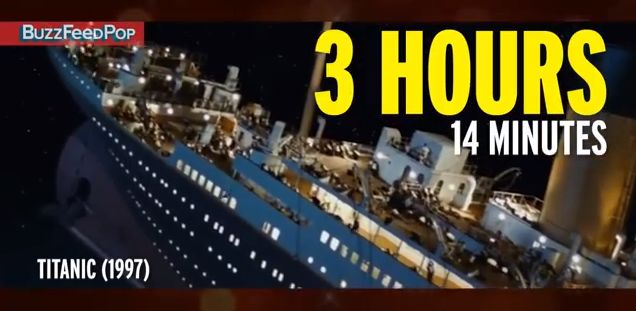 O tempo total do filme Titanic é exatamente o mesmo tempo que o navio levou para afundar em seu acidente original: 3 horas e 14 minutos.