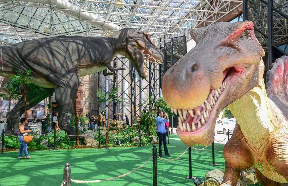 A mostra é gratuita é traz mais de dez réplicas em tamanho natural (de até 7 metros de altura) que reproduzem sons e movimentos dos temidos Tiranossauros Rex, Pterosauros, Velociraptor e Allosaurus. Tem ainda reprodução de fósseis e sessões de cinema em 7D que estão recheadas de efeitos que parecem levar as pessoas para uma viagem no tempo com jatos de água, vento, cadeiras que se mexem e até um rabo de dinossauro que sai de surpresa por baixo das cadeiras.