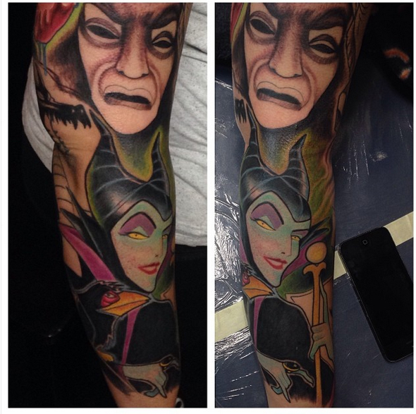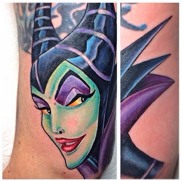 Hoje estreia mundialmente Malévola, que coloca Angelina Jolie no papel da bruxa que enfeitiça a Princesa Aurora (vivida por Elle Fanning) em A Bela Adormecida. O filme é um dos mais aguardados do ano e está sendo mantido em sigilo pela Disney até seu lançamento. Por aqui, achamos de bom tom homenagear a chifruda com 25 tatuagens de Malévola.
