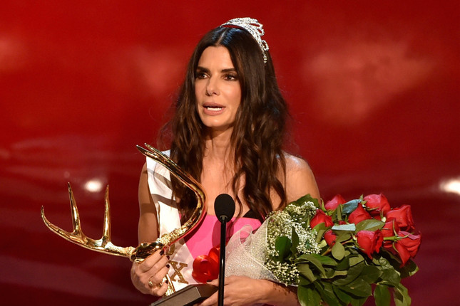 “Nós contávamos coma Sandra por tanto tempo para este prêmio que ela eventualmente diria sim ou conseguiria uma ordem judicial para mantermos distância”, disse Casey Patterson, vice presidente executivo da Viacom. Existe muita coisa sendo dita sobre o certo e o errado de se “honrar” uma mulher por uma década de sensualidade, mas a celebração tem um motivo: Velocidade Máxima foi lançado em junho de 1994, então Sandra vem sendo hot por mais de uma década. Este ano, Rihanna também foi honrada pela Spike TV com um prêmio menos memorável de “Mulher mais desejável”. Outra atrizes que já receberam os chifres dourados por serem sensuais por dez anos incluem Jennifer Aniston (2011), Charlize Theron (2010), Halle Berry (2009) e Cameron Diaz (2008).