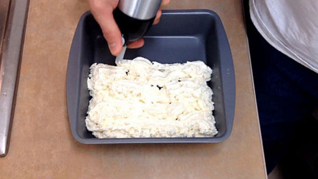 Acabaram de inventar o Spray Cake, uma ideia que pode revolucionar a forma como você faz as suas sobremesas. Ele é essencialmente o que parece – uma massa de bolo condensada dentro de uma lata spray. Tudo o que você precisa fazer é empurrar para baixo o bico do aerosol e colocar a massa pré-fabricada diretamente em uma assadeira. A melhor parte é que você não precisa ligar o forno. Basta colocar no microondas e depois de um minuto (apenas 1 minuto), ele estará pronto.
