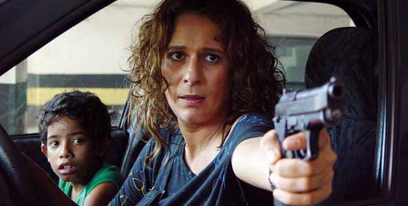 A professora que se vê obrigada a resgatar um aluno que foge de bandidos é uma personagem forte e decidida.