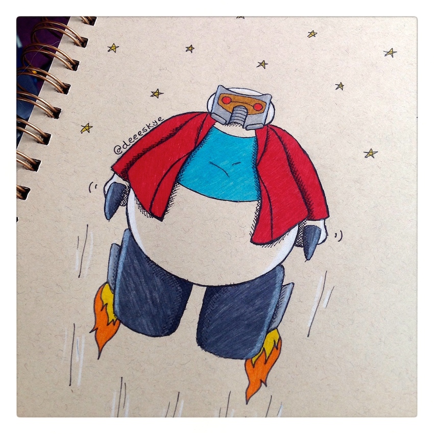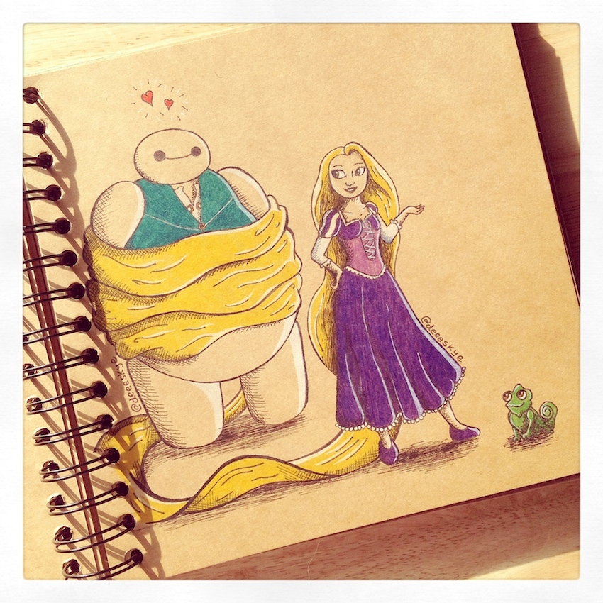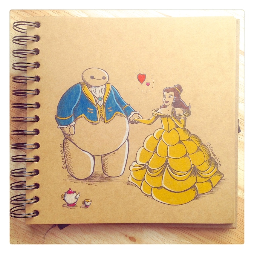 A ilustradora escocesa Demetria Sky Logan (DeeeSkye no deviantART), criou uma série de ilustrações que coloca o robô em diferentes cenas e cenários, interagindo com os mais diversos personagens Disney, como Branca de Neve, Merida, Rapunzel, Anna e Tiana. Ela vai além na criatividade e veste Baymax com figurinos de personagens conhecidos, como Malévola, Mickey ou Magneto, e também o coloca em situações com outros seres que adoramos das animações, como Banguela e Soluço.