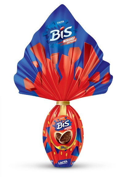 A família Bis continua crescendo, e agora ganha a versão morango do ovo de Páscoa, com sabor morango misturado ao chocolate.
