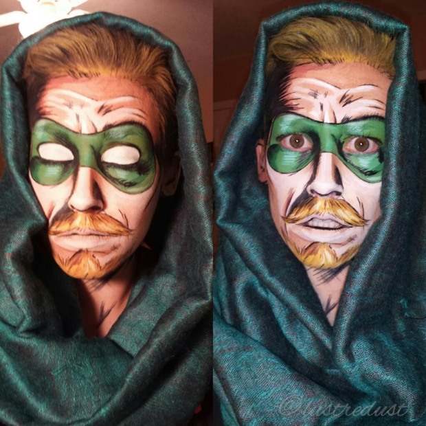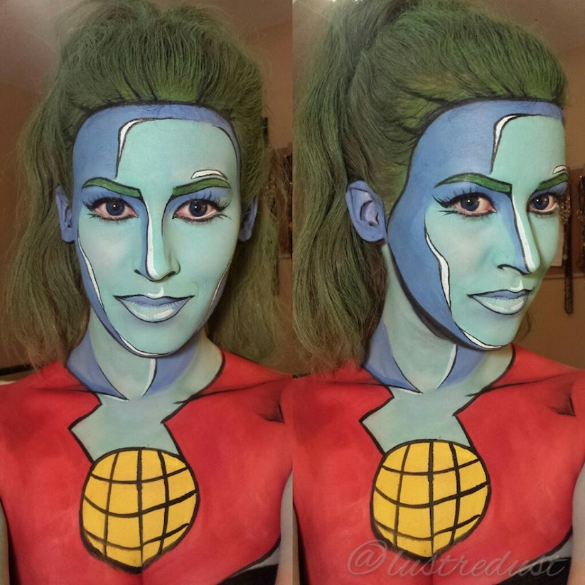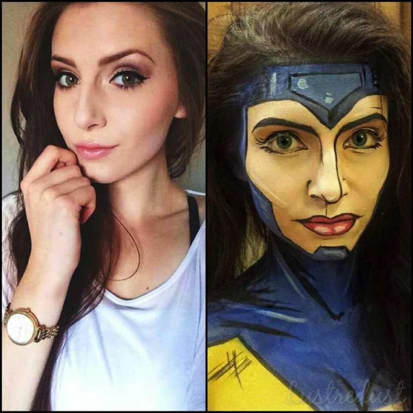 Agora some essas duas coisas e um talento impressionante e você tem o trabalho de Lianne Moseley. Seu trabalho impressionante está se espalhando pelo mundo virtual rapidamente, e não sem motivo. Moseley cria em pessoas reais o visual das histórias em quadrinhos com traços firmes e cores fortes apenas de maquiagem.