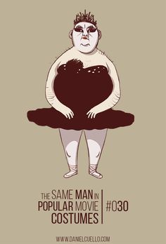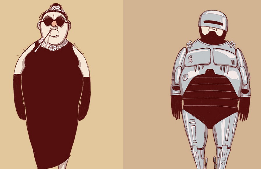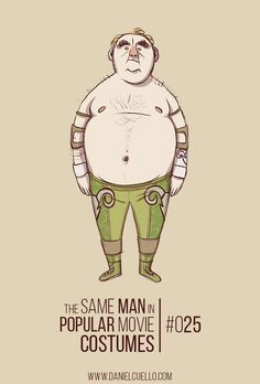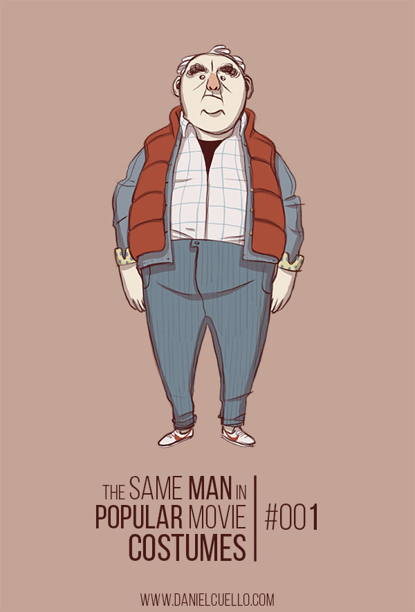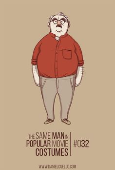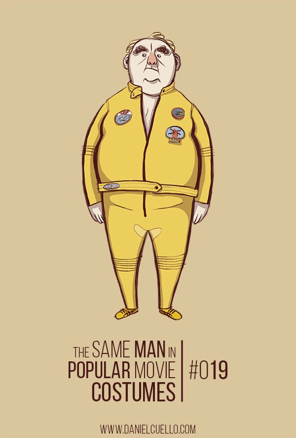 Ilustrações de personagens que imitam gente de cinema a gente vê às pencas por aí, mas uma vez ou outra alguém se destaca. É o caso do desenhista italiano Daniel Cuello que criou um senhor gordinho que adora se fantasiar como personagens de filmes. Dos mais variados gêneros.