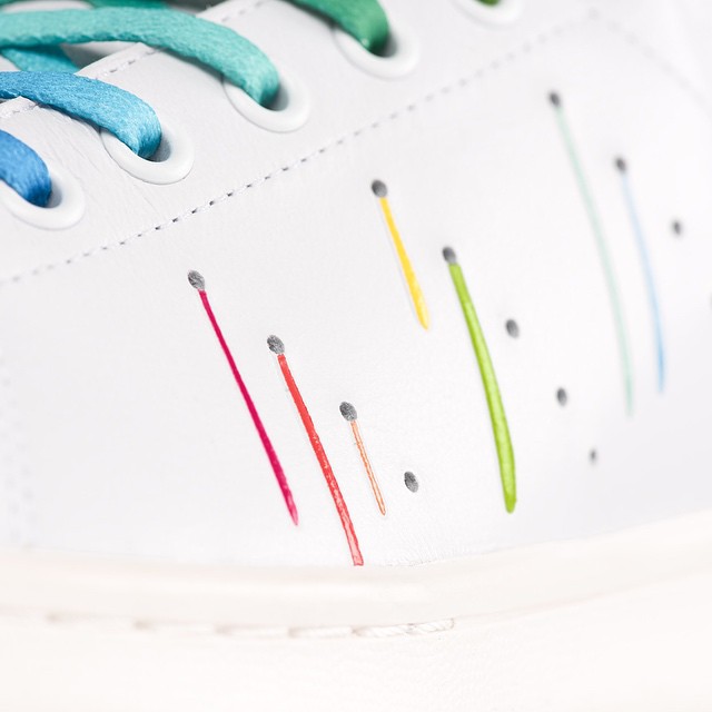 O modelo Originals Stan Smith “Pride” Pack trará um tênis todo branco que possui “gotas” nas cores do arco-íris escorrendo de pequenos furos nas laterais. Dentro do tênis, uma sola multicolorida e o cadarço tem um degradê também com as cores do arco-íris.