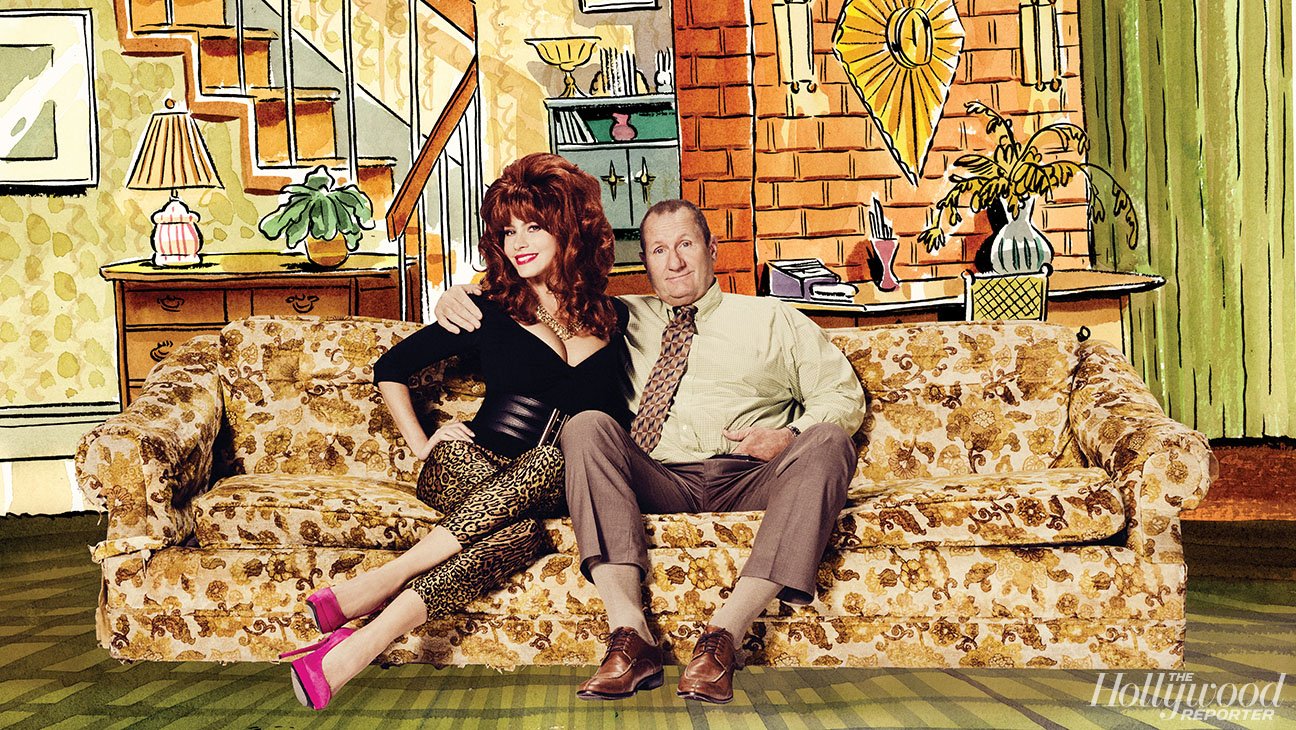 Sofia Vergara e Ed O’Neill como Peg e Al Bundy. “Adorei me vestir como a primeira esposa de Ed na TV. Estou começando a achar que Ed só aceita papéis com uma esposa de seis fartos. E ainda bem que cheguei lá!”, diz Vergara. Ed O’Neil, que interpretava o patriarca em Married… With Children, acrescenta: “Foi ótimo revisitar os Bundy com outra linda mulher ao meu lado”.