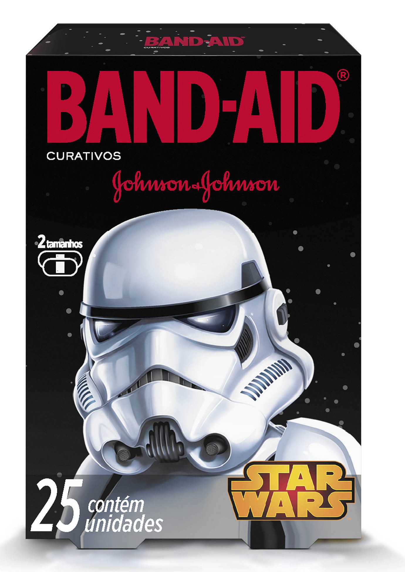 Já a BAND-AID®, linha de curativos da Johnson & Johnson, traz sua nova linha de curativos inspirados na saga Star Wars. Por meio de uma colaboração entre a Disney e BAND-AID®, os personagens Chewbacca, Darth Vader, Yoda, R2-D2 e Stormtrooper chegam ao mercado nacional, em uma linha inédita totalmente decorada, para ajudar os pais na missão de cuidar e proteger os machucados dos pequenos.