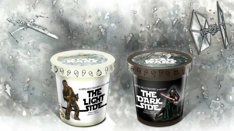 A Ample Hills Creamery, sorveteria do bairro do Brooklyn em Nova York, criou uma edição limitada para celebrar o novo filme da saga Star Wars, “O Despertar da Força”.