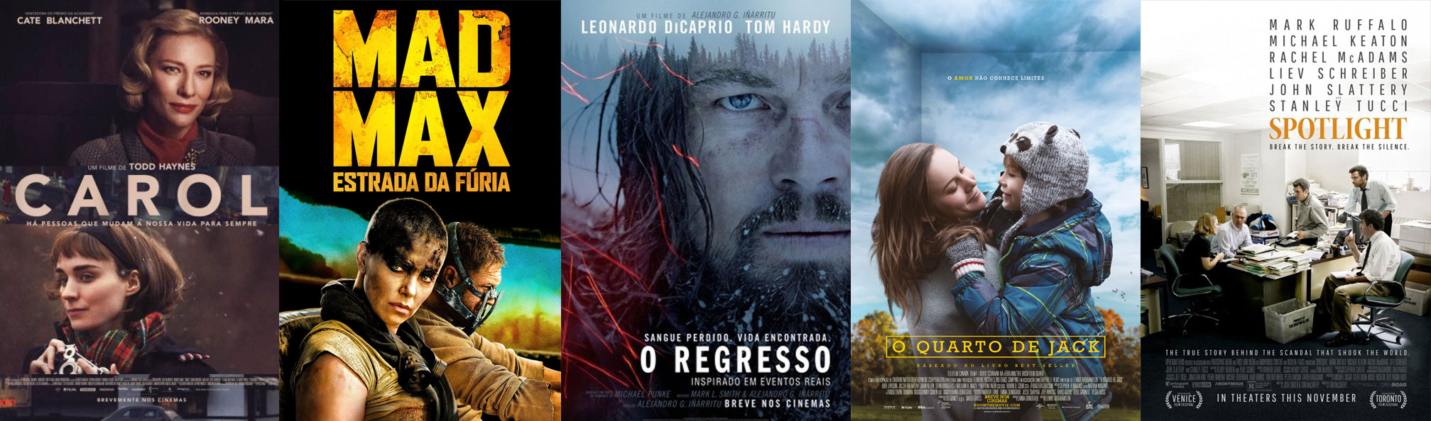 Carol é o drama de Todd Haynes (Não Estou Lá), que mostra o romance das personagens vividas por Cate Blanchett e Rooney Mara. O Regresso, A Grande Aposta e Steve Jobs aparecem logo atrás, com quatro indicações cada.