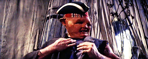 - “Holy shit!” O elenco foi proibido de ver o tal navio antes das filmagens – exatamente para pegar a reação das crianças o mais genuína possível, ao verem a embarcação pela primeira vez. Foi aí que Josh Brolin (Brand), então com 16 anos, soltou um “puta merda!” (“holy shit!“) e a cena teve que ser refilmada.
