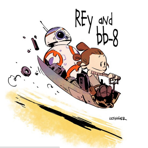 Brian Kesinger, o responsável pelos desenhos, disse ao site Mashable que se sentiu inspirado pela cena em que Rey escorreda por uma duna em Jakku, afirmando que aquilo imediatamente o lembrou de Calvin e Haroldo em seu escorrega vermelho. A partir daí, para ele, as similaridades começaram a ser óbvias. “Calvin e Haroldo é excelente por muitas razões, mas é a amizade de um menino e seu tigre de pelúcia que o torna um clássico, e eu acredito que Star Wars permanece vivo até hoje por conta dos laços entre os personagens”, disse ele.