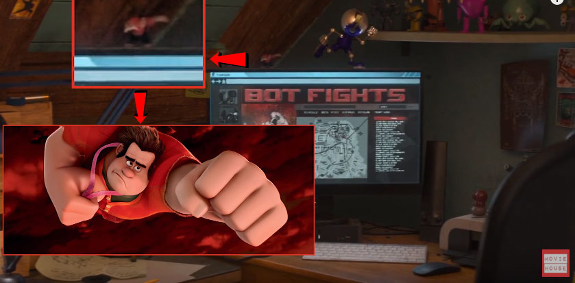 Boneco Detona RalphEstes três são ninguém menos que John Lasseter (diretor da Pixar), Edwin Catmul (presidente da Pixar) e Andrew Millstein (presidente da Disney Animations).Reconheceu? É De Volta Para o Futuro fazendo uma pontinhaHiro tem um boneco do UltramanE mais um do Ralph, agora com armaduraNa estação policial tem um “procura-se” do Príncipe Hans, de FrozenE estes dois são os diretores de Enrolados: Byron Howard e Nathan Greno.E aparentemente o policial é marido da policial de Bolt. E também é fã do cachorro.Mochi, o gato de Hiro, em uma fantasia de StitchZootopiaMickey ocultoOlha o Stan Lee aí!Revista real da MarvelAlmofada do StitchFliperamas de Detona RalphO monstro de Detona RalphSatan, também de Detona RalphMais uma revista real da MarvelA113, reconhece este número? Ele está em todas as animações da Pixar, é o número da sala que muitos de seus diretores e animadores estudaram.Príncipe Hanz de novo.Mais um Mickey escondidoAté o Olaf!Chicken Little e Ralph no telãoE papai Stan Lee na cena pós créditos.