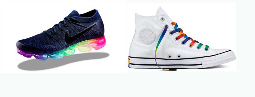 Agora foi a vez da Nilke e Converse lançarem uma coleção linda e muito colorida para festejar esse orgulho. Ambas marcas desenvolveram calçados, meias, tops e camisetas com as cores inspiradas na bandeira LGBT.
