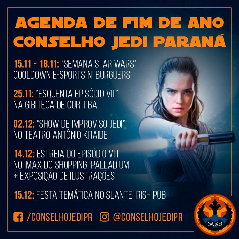 Com a estreia do Episódio VIII “Os Últimos Jedi” agora em dezembro e os 40 anos da saga Star Wars, o Conselho Jedi Paraná está preparando várias atividades para esse final de ano.