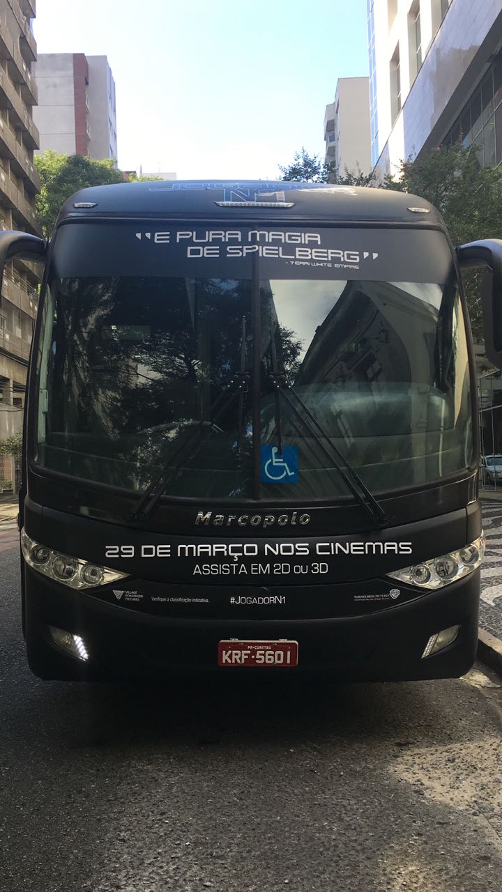 A Warner Bros. Pictures preparou um ônibus especial para divulgar o lançamento do filme Jogador Nº1 nos cinemas. De 23 de março a 01 de abril o ônibus adesivado estará circulando pelos principais pontos da cidade de Curitiba, no Paraná. O ônibus traz de volta o icônico DeLorean, carro utilizado pelo protagonista Parzival no próximo filme de Steven Spielberg, que chega aos cinemas brasileiros no dia 29 de março.