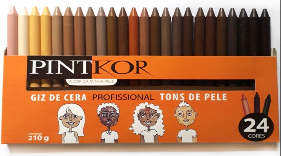 Foram buscadas formas de trazer outras alternativas, e foi quando a Koralle, que produz diversos itens artísticos e de papelaria, entrou como parceira da ação. O kit inicial criado pela empresa tinha 12 tons, entre bege e marrom escuro, que ajudam as crianças a encontrarem o tom que mais se assemelha ao da sua própria pele – principalmente as negras, que raramente se veem representadas.