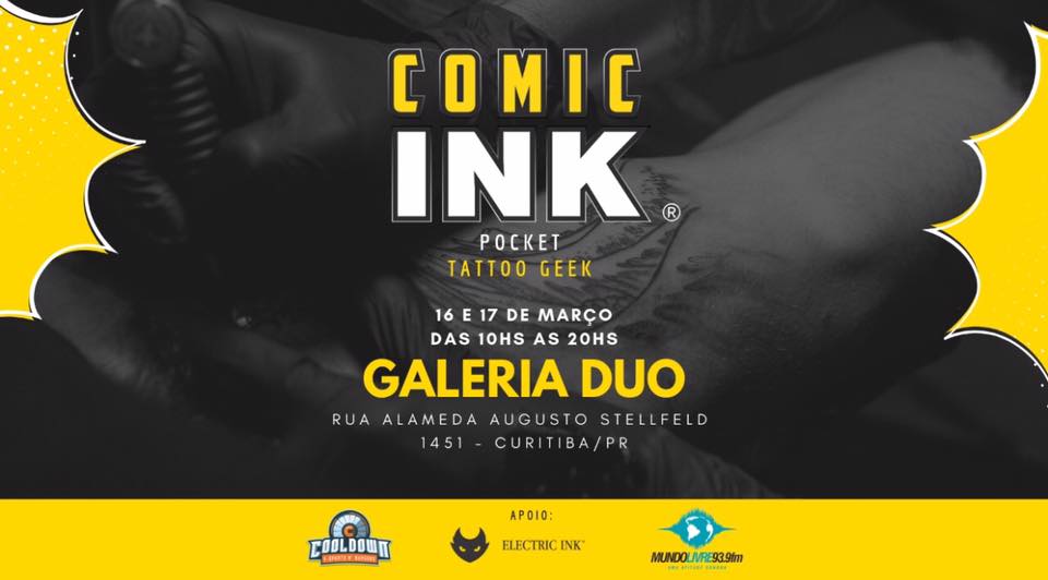 O Comic Ink acontece nos dias 15 de março no CoolDown a partir das 19h e nos dias 16 e 17 na Galeria Duo, um espaço coworking de tatuagens no Bigorrilho. Os dois eventos têm entrada gratuita mas quem quiser pode levar um quilo de alimento para doação.