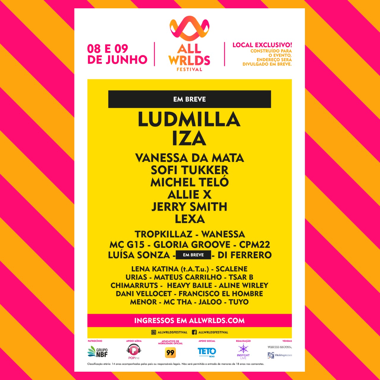 O line up completo foi revelado neste domingo, 10 de março, por meio das redes sociais do ALL WRLDS FESTIVAL: @allwrldsfestival (Instagram), allwrldsfestival (Facebook). A venda de passaportes para o festival, com um lote promocional, já está disponível. Os ingressos poderão ser adquiridos no site do festival http://www.allwrlds.com