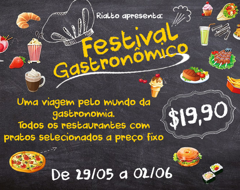 As comemorações começam no dia 29 de maio com o lançamento do primeiro Festival Gastronômico Rialto. Durante cinco dias todos os restaurantes e lojas da vila vão oferecer um prato com o valor fixo de R$19,90. São doces, salgados, sobremesas e bebidas nas 15 operações da Rialto. Na abertura do Festival, na quarta-feira a partir das 19h, um chef escolhido especialmente para a ocasião vai falar com o público sobre preparo e harmonização de massas e vinhos.