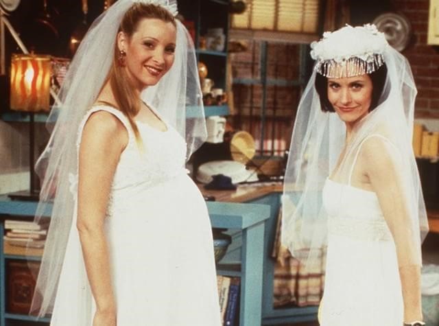 24. Lisa Kudrow estava realmente grávida, em 1997, quando Phoebe fez a inseminação artificial para esperar os filhos do irmão. Toda a história foi escrita de última hora, por causa da gestação da atriz. Em compensação, na última temporada, Courteney Cox precisou esconder sua gestação, afinal Monica e Chandler não poderiam ter filhos. Se você reparar, na temporada final a atriz está usando roupas mais largas, para disfarçar os primeiros meses de sua gravidez.