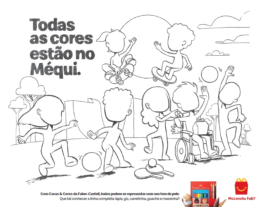 A peça, que contou com criação da DPZ&T, registra um encontro real realizado em um dos restaurantes McDonald’s, que reuniu crianças diversas para passar momentos juntas, brincando, desenhando e colorindo com os produtos da linha Caras & Cores, da Faber-Castell. A linha traz uma paleta especial que estimula as crianças a se representarem em seus desenhos com seu tom de pele. O resultado pode ser conferido nos canais oficiais do McDonald’s Brasil.
